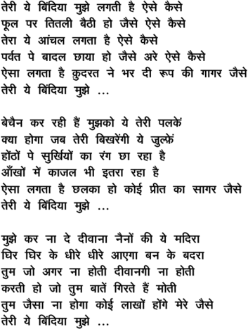terii ye bi.ndiyaa mujhe lagatii hai aise kaise