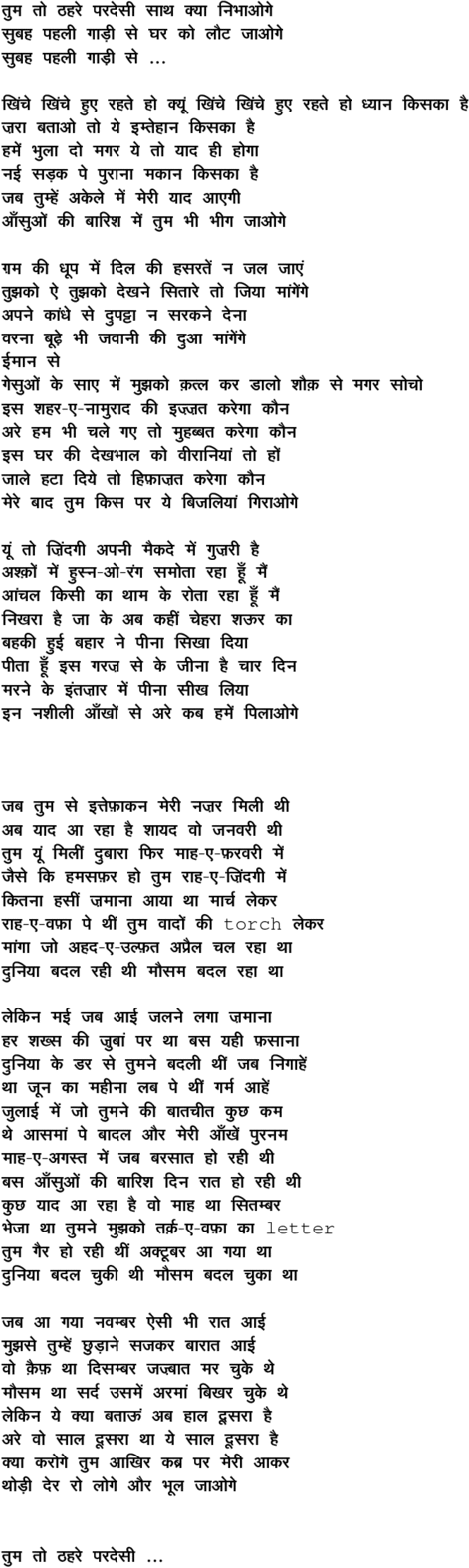 tum to Thahare paradesii saath kyaa nibhaa_oge