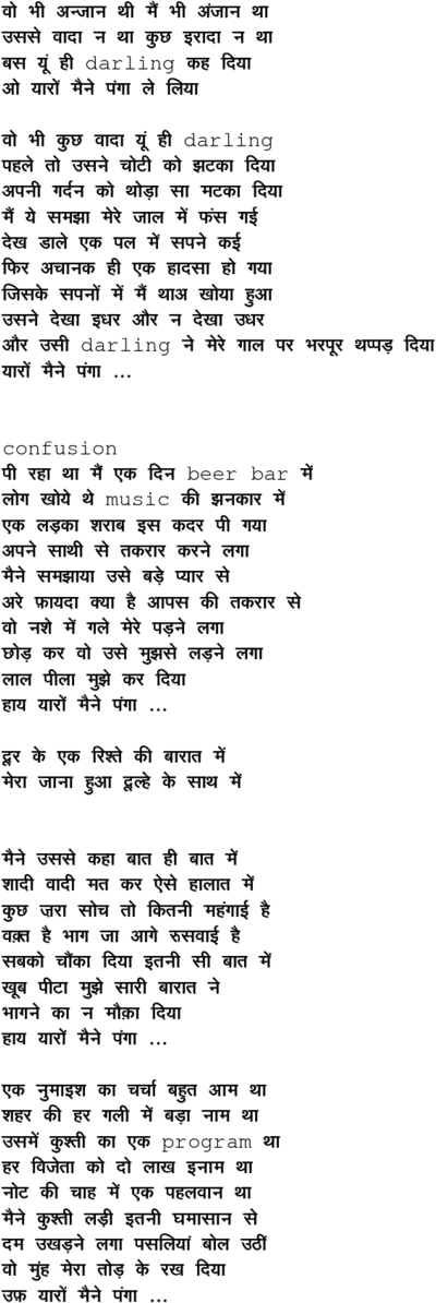vo bhii anjaan thii ... yaaro mai.nne pa.ngaa le liyaa