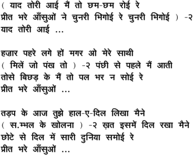 yaad torii aa_ii mai.n to chham\-chham ro_ii re