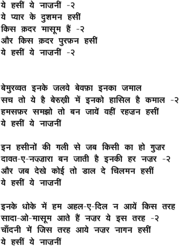 ye hasii.n ye naazanii.n