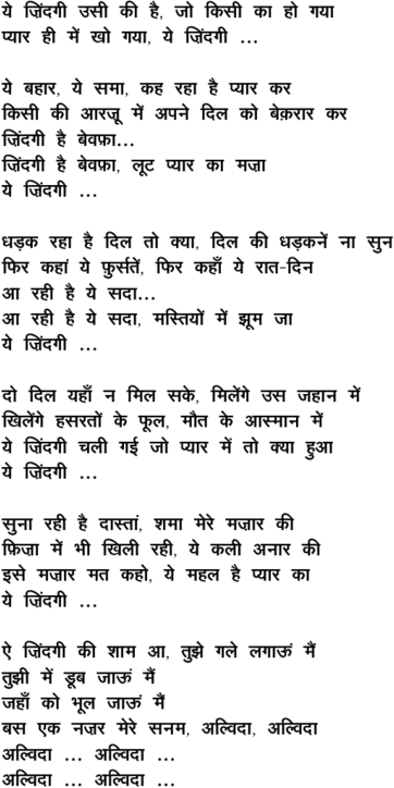 ye zi.ndagii usiiki hai, jo kisii kaa ho gayaa