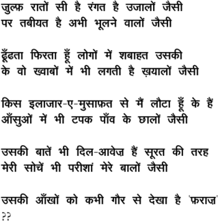 zulf raato.n sii hai ra.ngat hai ujaalo.n jaisii